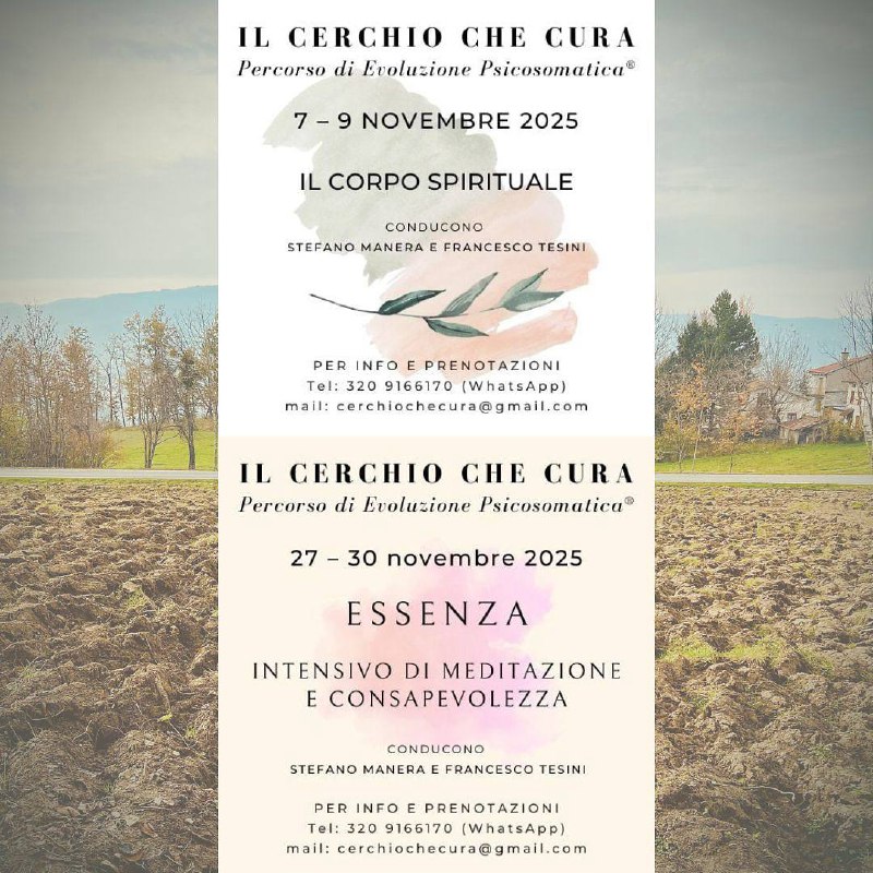Nel mese di novembre avremo la gioia di condurre due ritiri distinti, entrambi importanti e profondi.