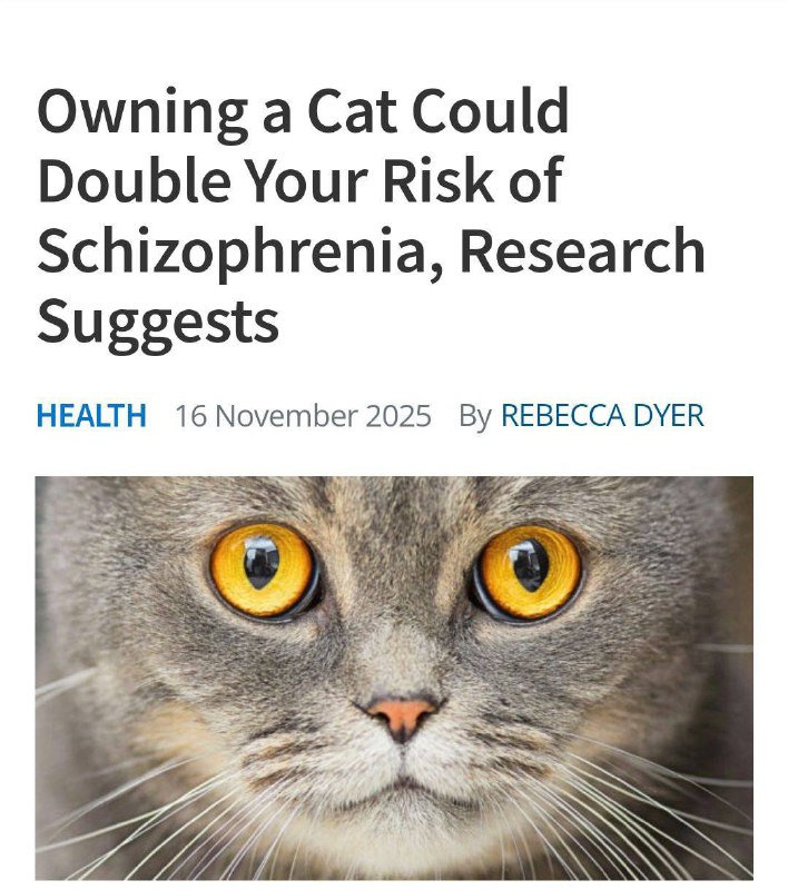 У владельцев кошек риск шизофрении вдвое выше — из-за паразита Toxoplasma gondii, которым они могут заражаться.