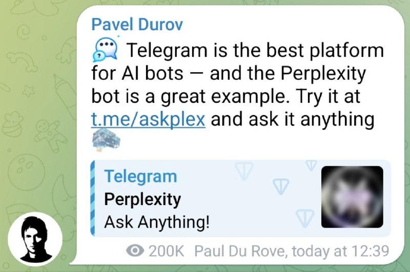 🧠 ربات هوش مصنوعی Perplexity در کانال پاول دوروف معرفی شد!