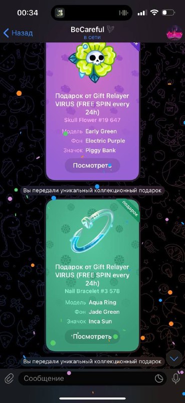 (Отправляйте их боту @virusgift)